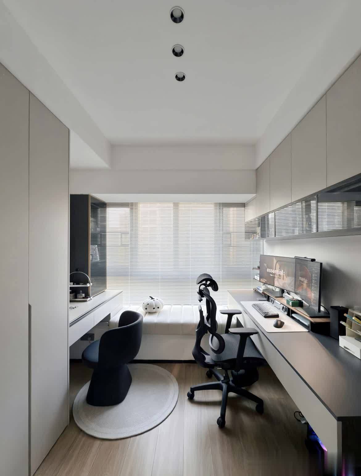 我家四房改三房,将主卧跟次卧打通,舍弃的次卧改成书房+衣帽间+化妆间三合一! 真的太香了✨ 每天早上在这里化妆,白天办公 晚上搭配衣服,一条龙搞定