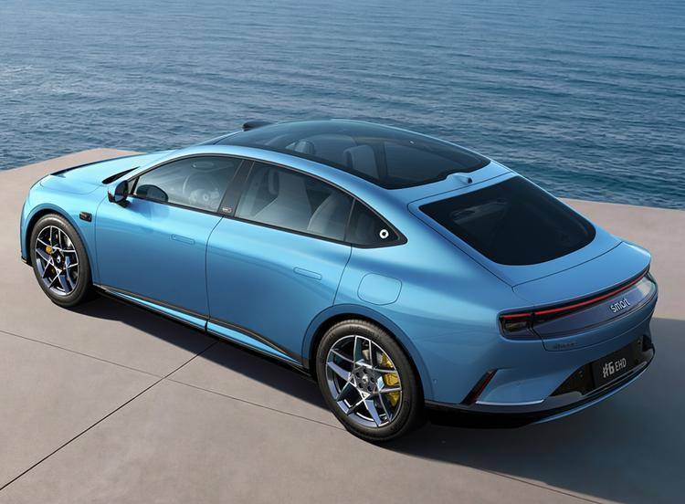 Smart精灵#6定位是中型轿车,是Smart品牌有史以来尺寸最大的车型,预计会在今年中旬上市。新车外形设计原创度很高,前脸配备了封闭式中网,但设计了“仿生鲨吻式”的贯穿风道,配合上黄色刹车卡钳显得运动感极强。车辆配备了隐藏式门把手,尾部采用溜背设计,配备有大尺寸电动后扰流板。